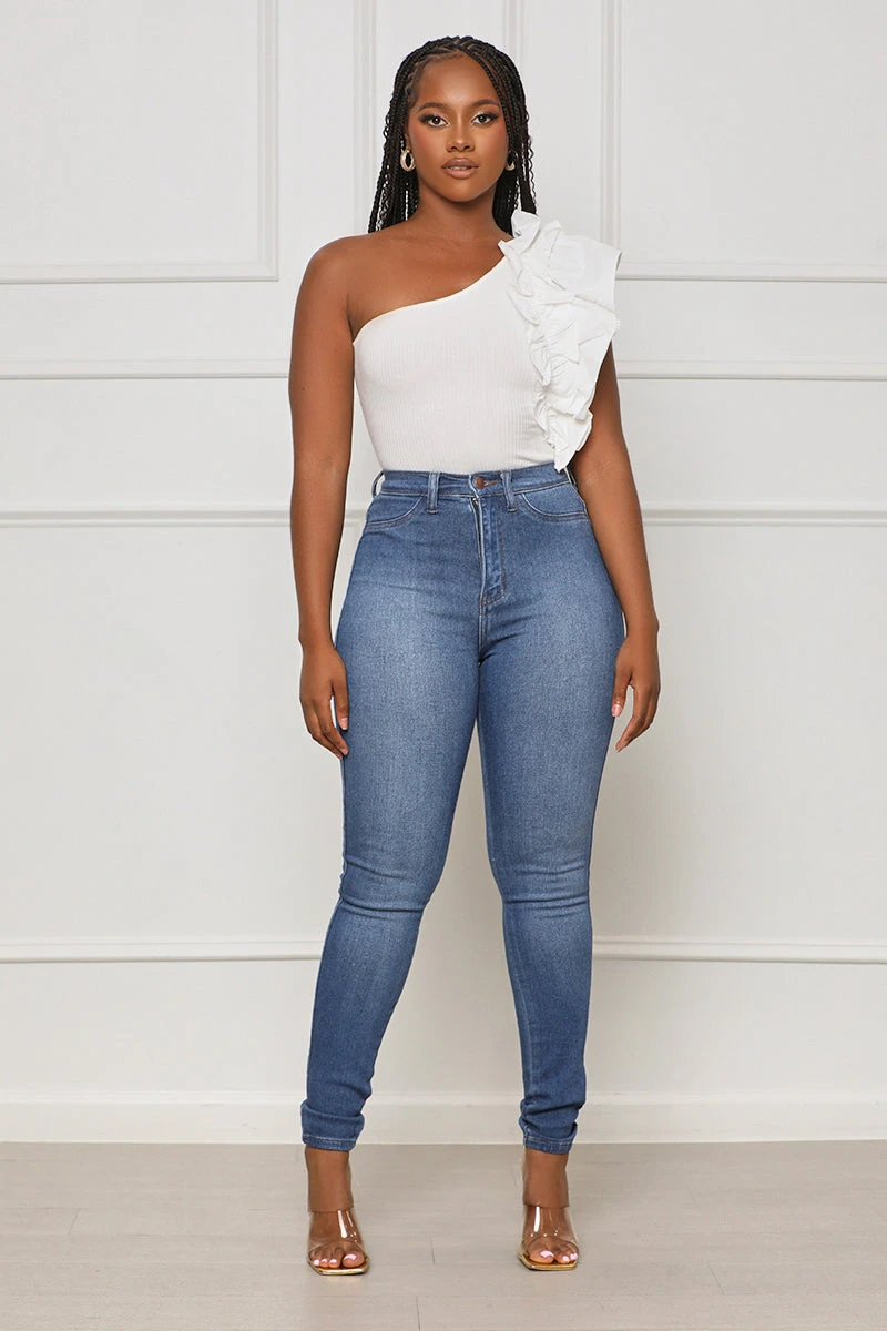 Our Always There Ruffle Bodysuit is the perfect staple for any outfit. Crafted with an elegant one-shoulder design, this bodysuit features a beautiful, frilled sleeve that adds a unique touch to your outfit. You can wear it for any occasion – dress it up with a skirt for a work meeting, or wear it with jeans for a night out. It’s the perfect piece to bridge the gap between day and night.