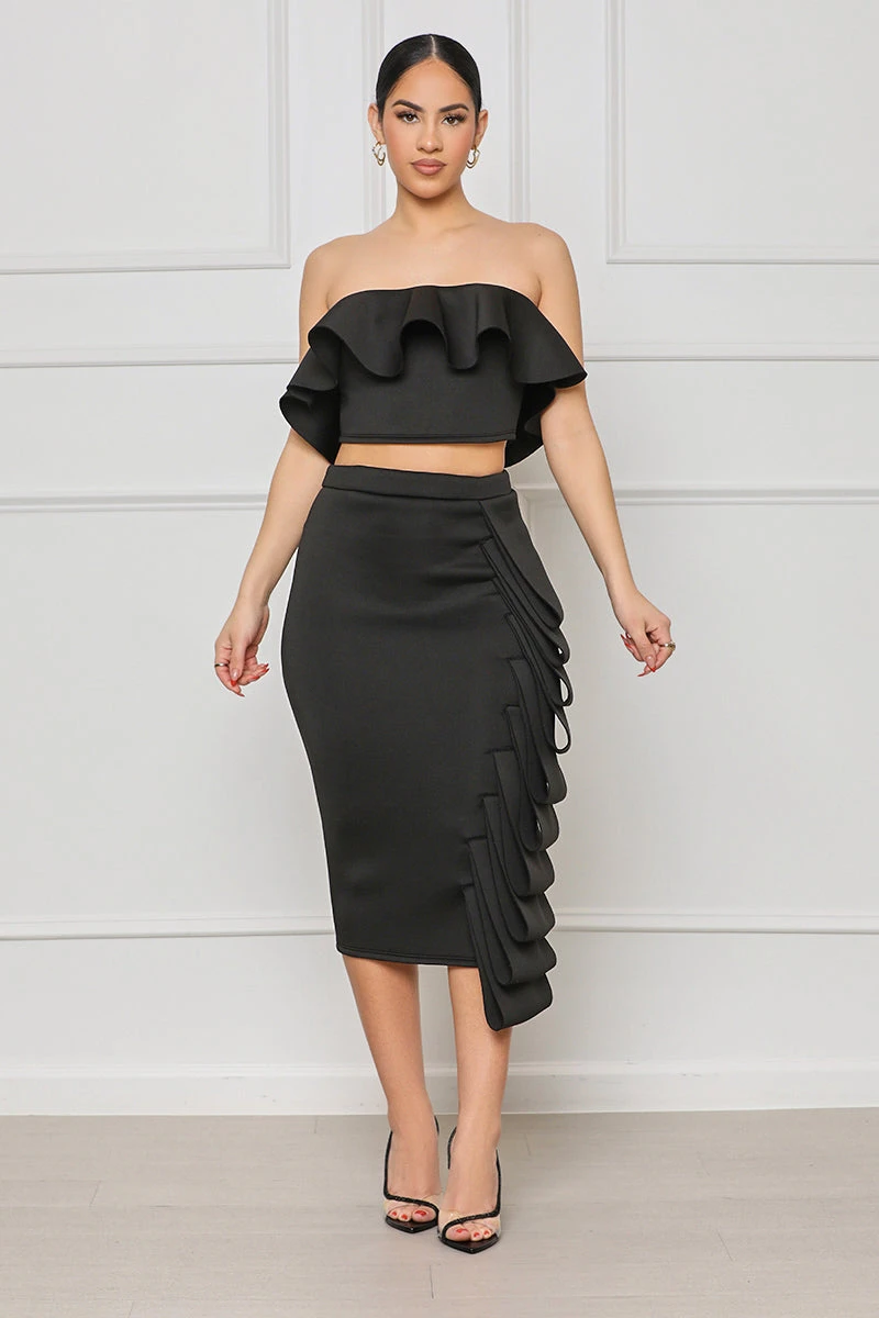Born Elegant Peplum Skirt Set (Black)- FINAL SALE
