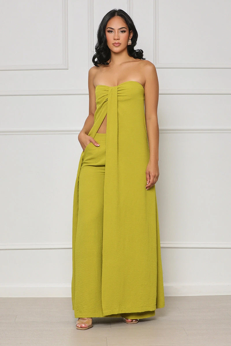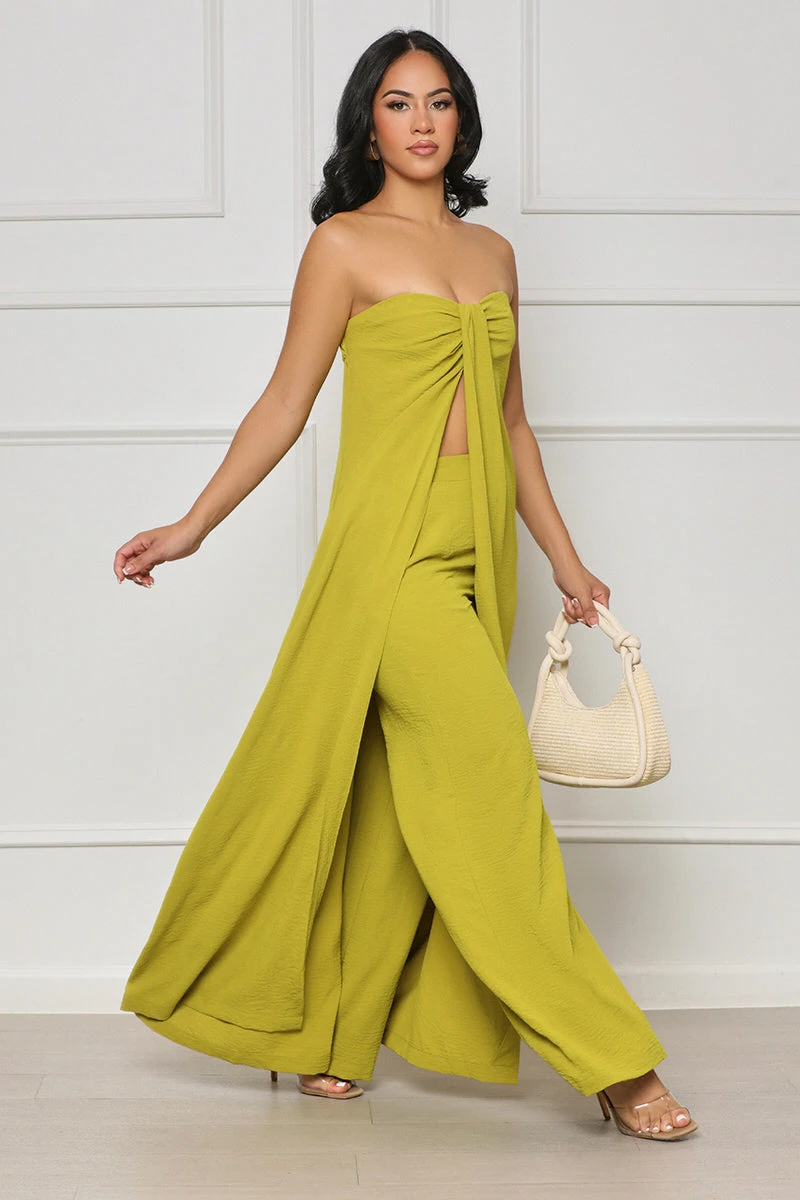 Look fashionable and comfortable in Coastal Breeze Tunic Pants Set. This set features a strapless tunic paired with matching trousers with an elastic band for a perfect fit. Crafted with breathable and lightweight fabric, you’ll stay comfortable and stylish all day.