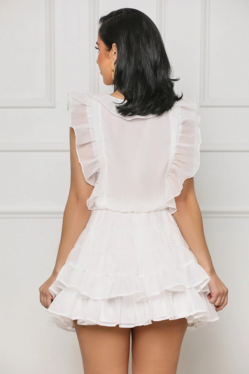 Create a storybook look with this charming Enchanted Dreams Ruffle Skirt Set. Crafted from light and airy fabrics for a wonderfully soft sensation, this set features a ruffled top with beautiful button detailing and a button closure. The matching skirt has a tiered ruffle design and an elastic waistband for a comfortable fit. This elegant style is sure to make a lovely impression on any spring day.