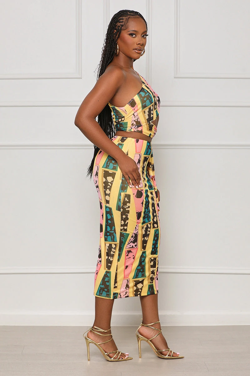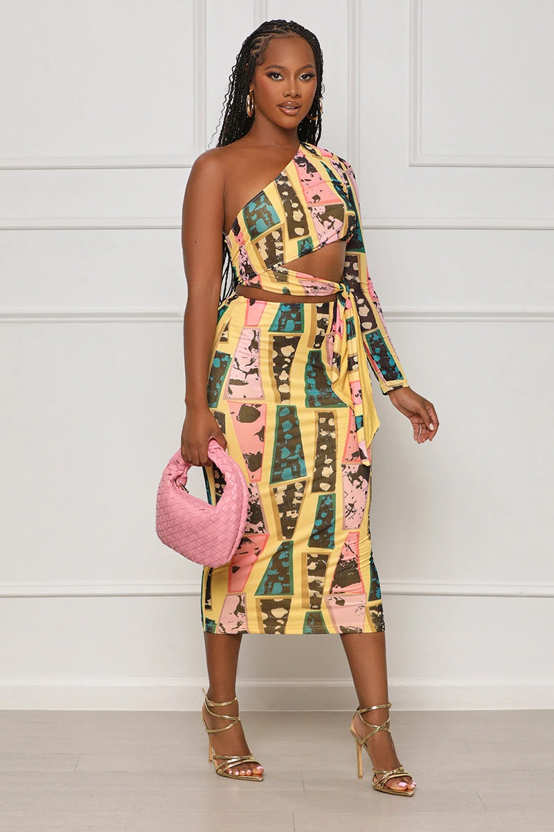 This Enough Plays Tribal Skirt Set is perfect for everyday wear. Made with lightweight fabric and intricate asymmetrical sleeves, this comfortable set is perfect for any occasion. It has a bodycon-fit and is made from stretchy fabric, ensuring comfort. The bright colors and vibrant patterns offer an eye-catching appeal, making this the ideal outfit to take on the night!