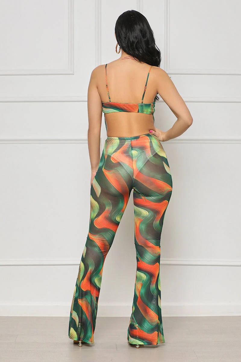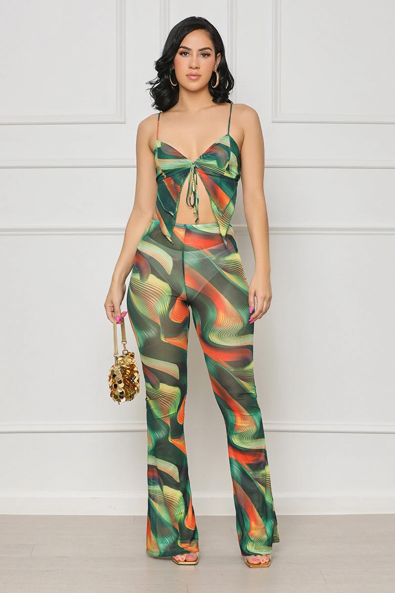 Achieve effortless style with our Exclusive Invite Mesh Pants Set. Crafted from lightweight mesh with an abstract print, this must-have set features cut-out detailing on the top with adjustable straps. The matching pants feature minimum stretch for a truly elevated style. Enhance this ensemble with a solid undergarment for a seamless look.