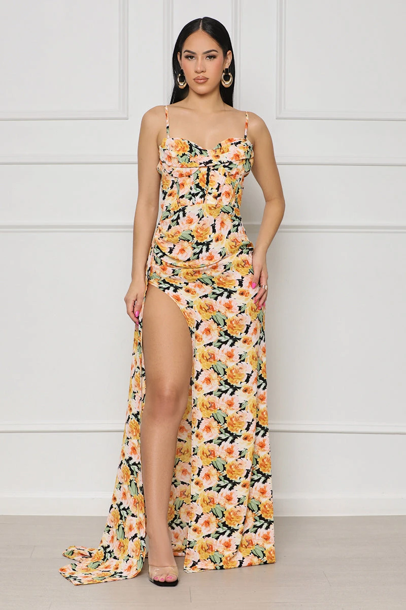This elegant Fancy Girl Sweetheart Floral Maxi Dress brings modern style with a touch of vintage flair. It’s designed with a corset style dress with a side cut out and sash, and a back zipper closure, creating a sophisticated yet flattering silhouette. Perfect for special occasions, you’ll be sure to turn heads in this timeless piece.