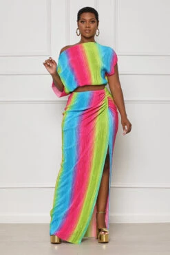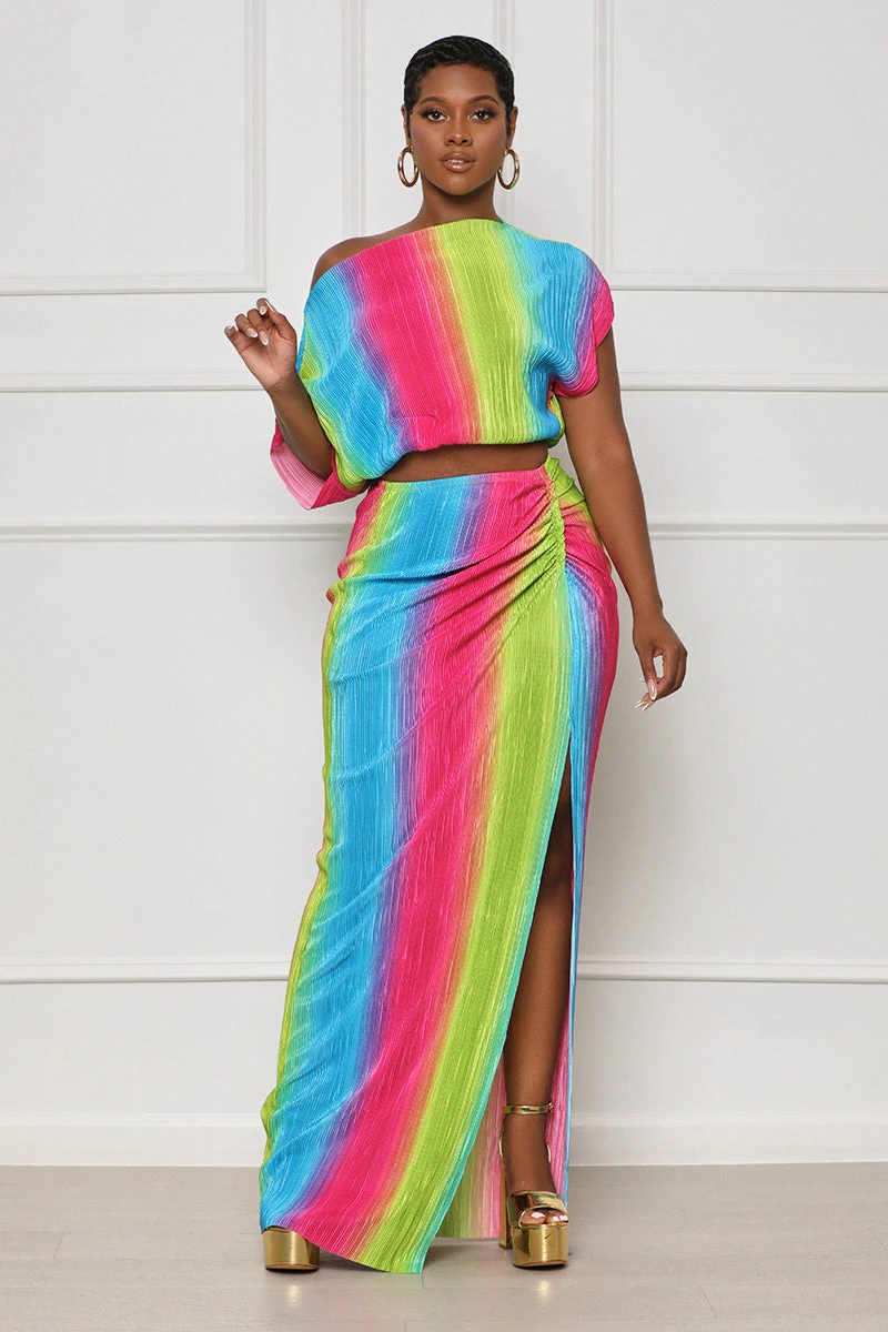 Look glamorous wherever you go in our Feeling Bold Crop Skirt Set. Showcasing a unique eye-catching print, statement top, and a matching maxi skirt with a flattering side-split. This two-piece set offers effortless elegance and is sure to make a statement. This set will take you from the beach to the bar in style. Pair with platforms and a bag for a chic vacation look.
