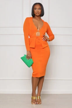 Feeling You Plunge Skirt Set (Orange)- FINAL SALE
