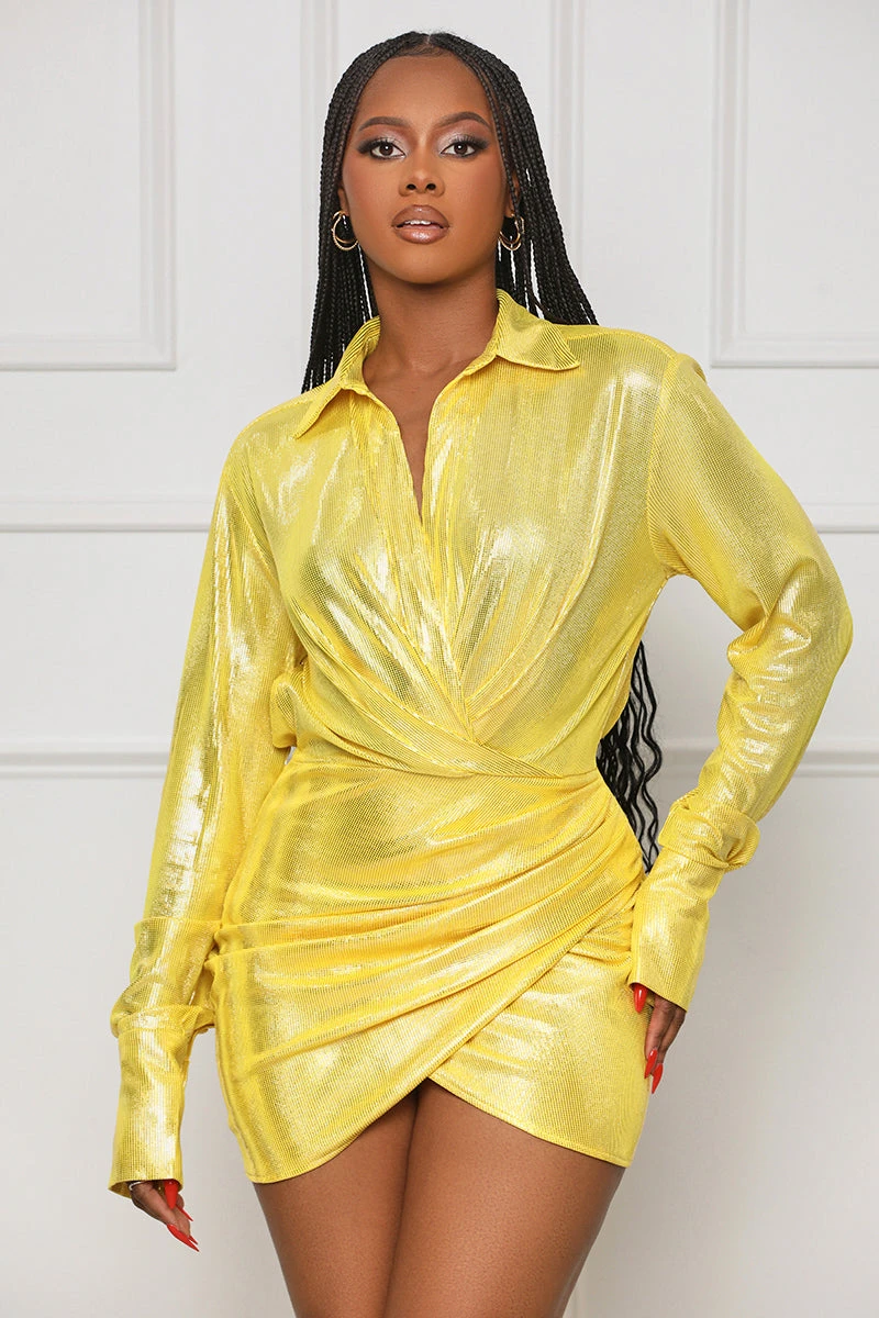The Fiery Nights Plunge Mini Dress is a classic cocktail dress with a touch of glamour. It has a faux wrap effect, long sleeves, and a plunging neckline to make you feel confident and sexy. The sleek, elegant silhouette pairs well with pumps and a handbag to wear to a date.