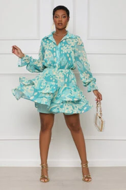 When it comes to brunching, this In Bloom Mini Dress is the ultimate way to impress. The abstract material adds a stylish vibe, while the peplum detailing creates a visually flattering shape. With its collared button-up neckline, you can wear this mini dress in many different ways. Style with heels and statement accessories for an even more fashion-forward look!