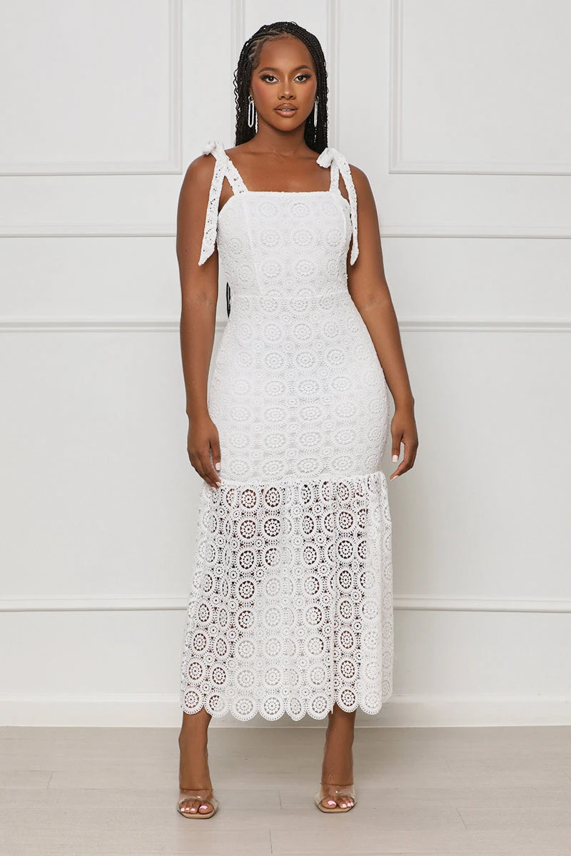 Enchant in the Irresistible You Broderie Midi Dress, crafted with timeless broderie lace print and adjustable shoulder straps for a more personalized fit. Its back zipper closure ensures a secure and stylish fit, perfect for wearing with your favorite heels and clutch. Make an unforgettable impression in this stunning piece.