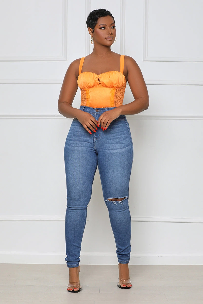 Give your look a classy and chic finish with this figure-flattering bodysuit. The Lace Sweetheart Bodysuit features a soft satin material that has a great amount of stretch, cup design, adjustable straps, and lace side panel detail. Pair with your favorite jeans, a strappy heel, and a handbag for a sexy look.