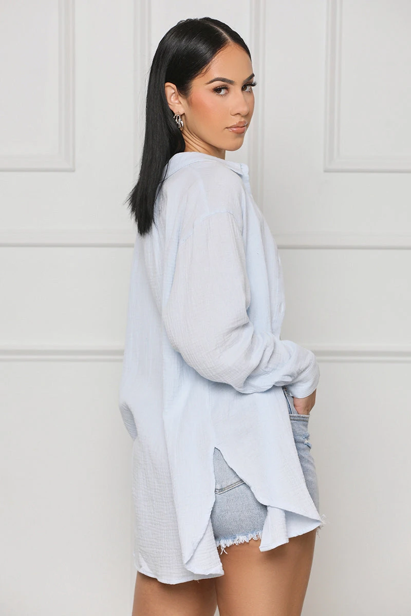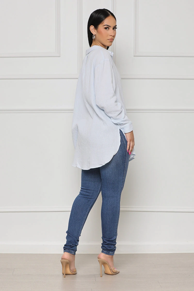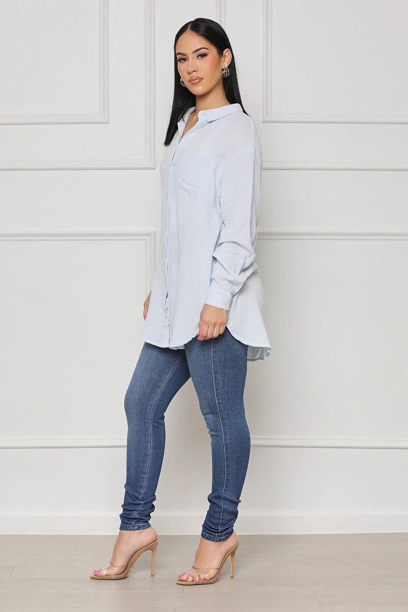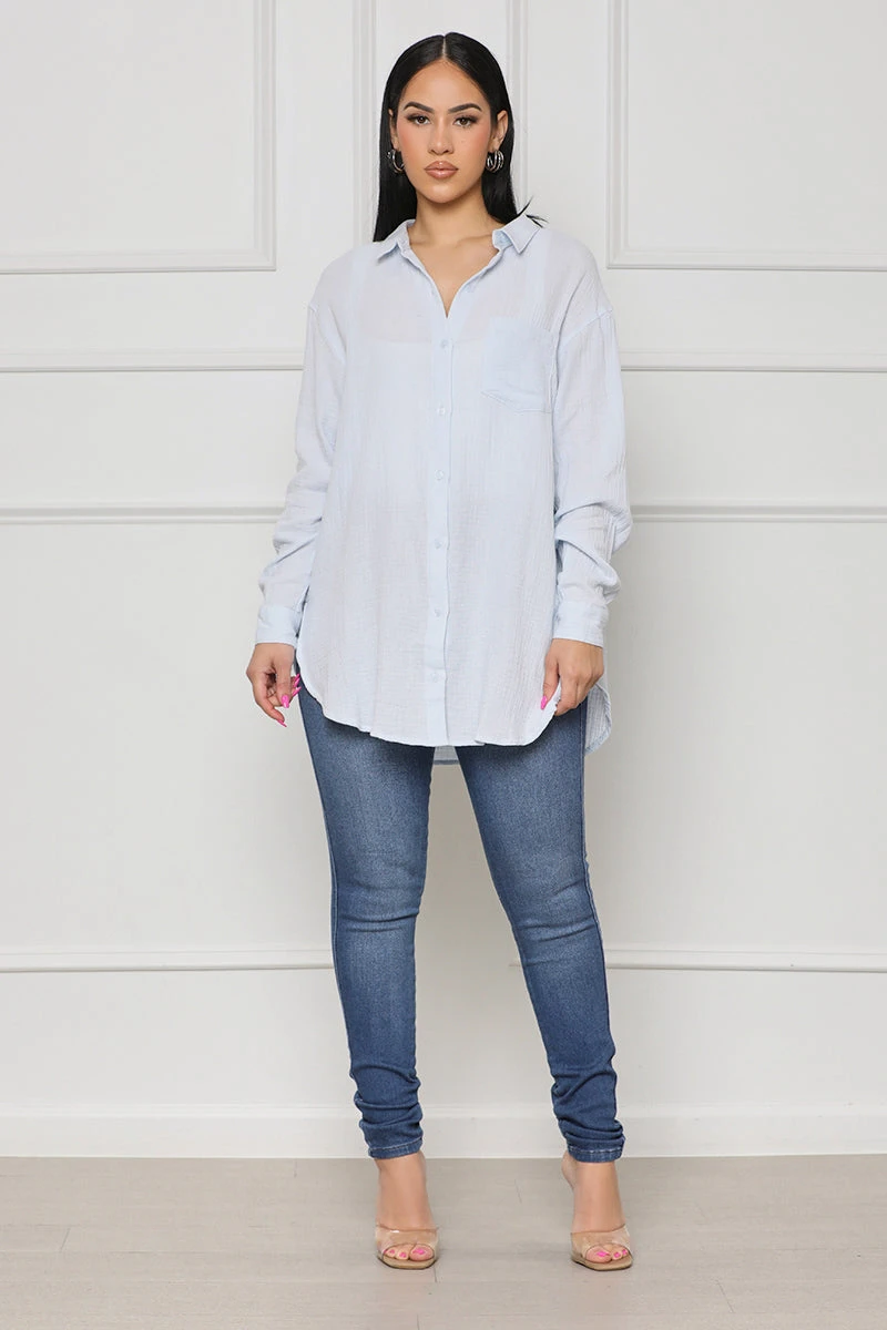 This Oversized Button Down Top highlights a front patch pocket at the chest and natural shell buttons. This top is lightweight, breezy, and breathable! A chic, classic must-have for everyday elevated comfort that compliments your favorite denim.