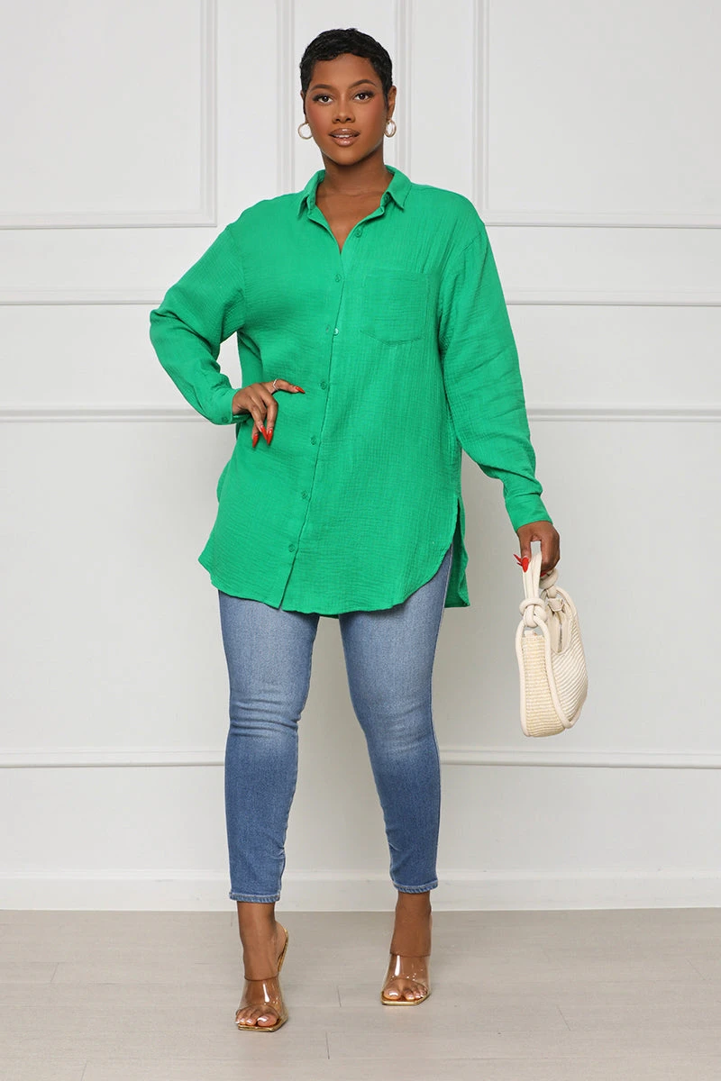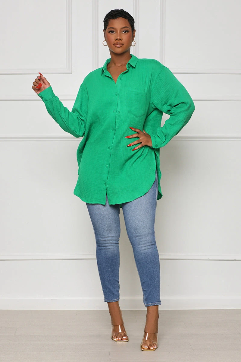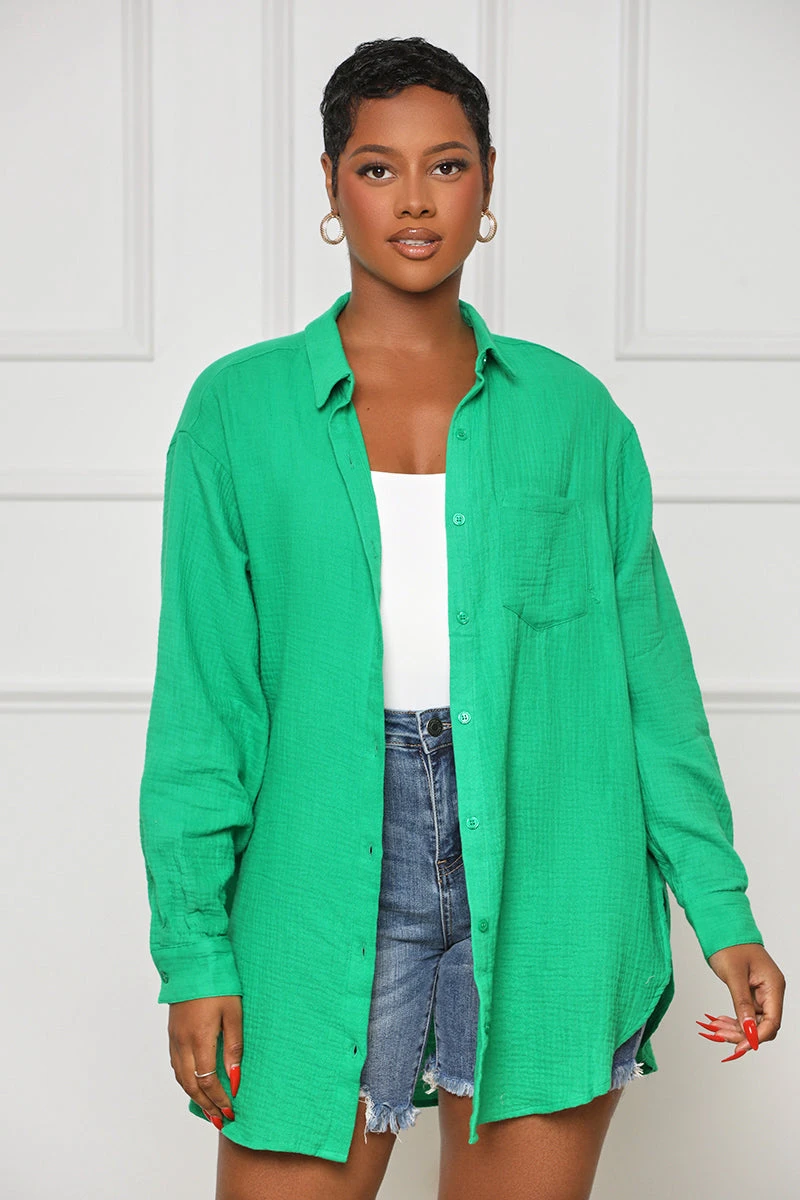 This Oversized Button Down Top highlights a front patch pocket at the chest and natural shell buttons. This top is lightweight, breezy, and breathable! A chic, classic must-have for everyday elevated comfort that compliments your favorite denim.