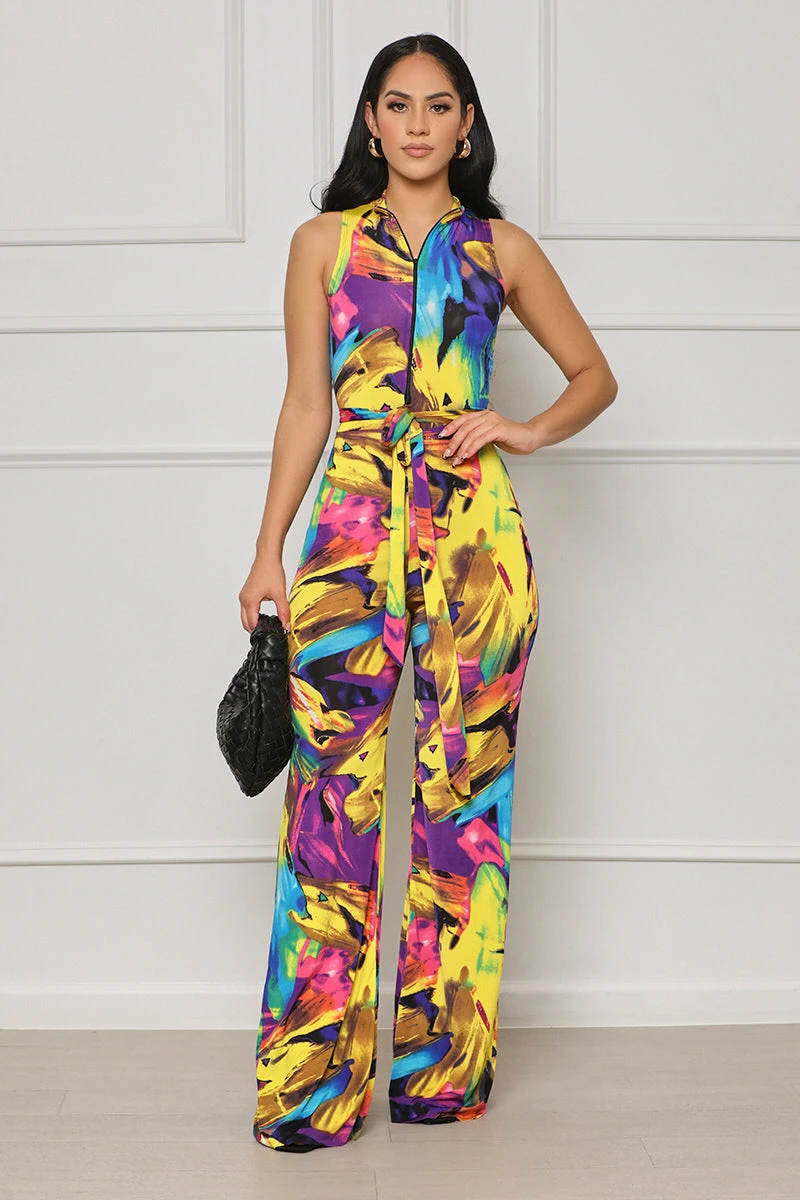 This Luxury Views Full Zipper Jumpsuit is perfect for any occasion. Crafted from a stretchy fabric and boasting a front zipper up to the neckline, you’ll have the freedom to move with ease. Featuring a removable waist belt, you can make a personalized style statement. With its elegant yellow multi-colored pattern, you’ll be the best dressed at any event.