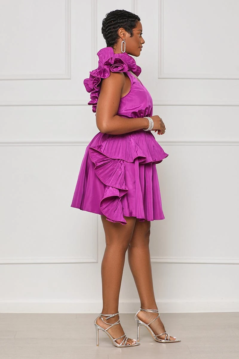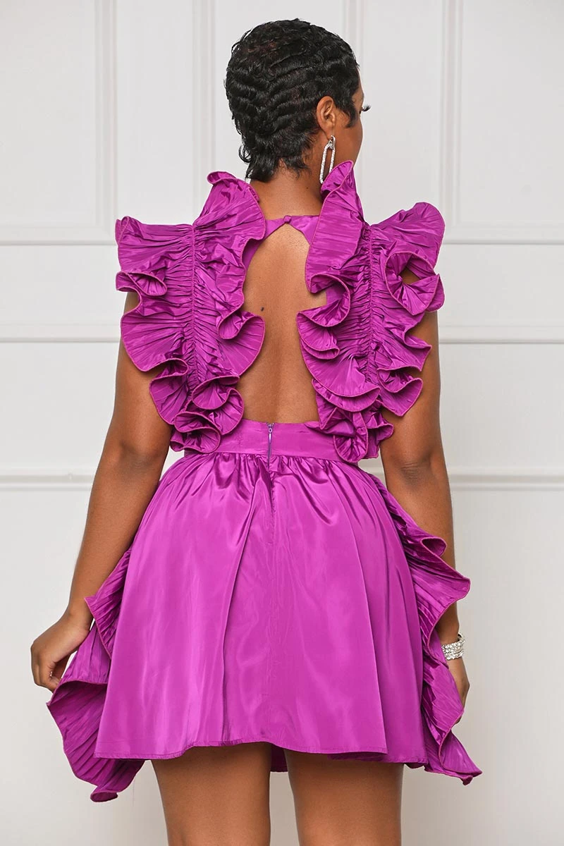 Make a statement at your next event in our ultra-glamorous Make A Scene Ruffle Mini Dress. This stunning purple dress features a plunging neckline and ruffled design throughout that creates an eye-catching effect. The bottom half is adorned with a tiered ruffle design and is finished with a backless design. Whether you’re celebrating your birthday or just a night out with friends, it is sure to make you stand out. Style with lace-up heels and statement jewelry for a timeless chic look.