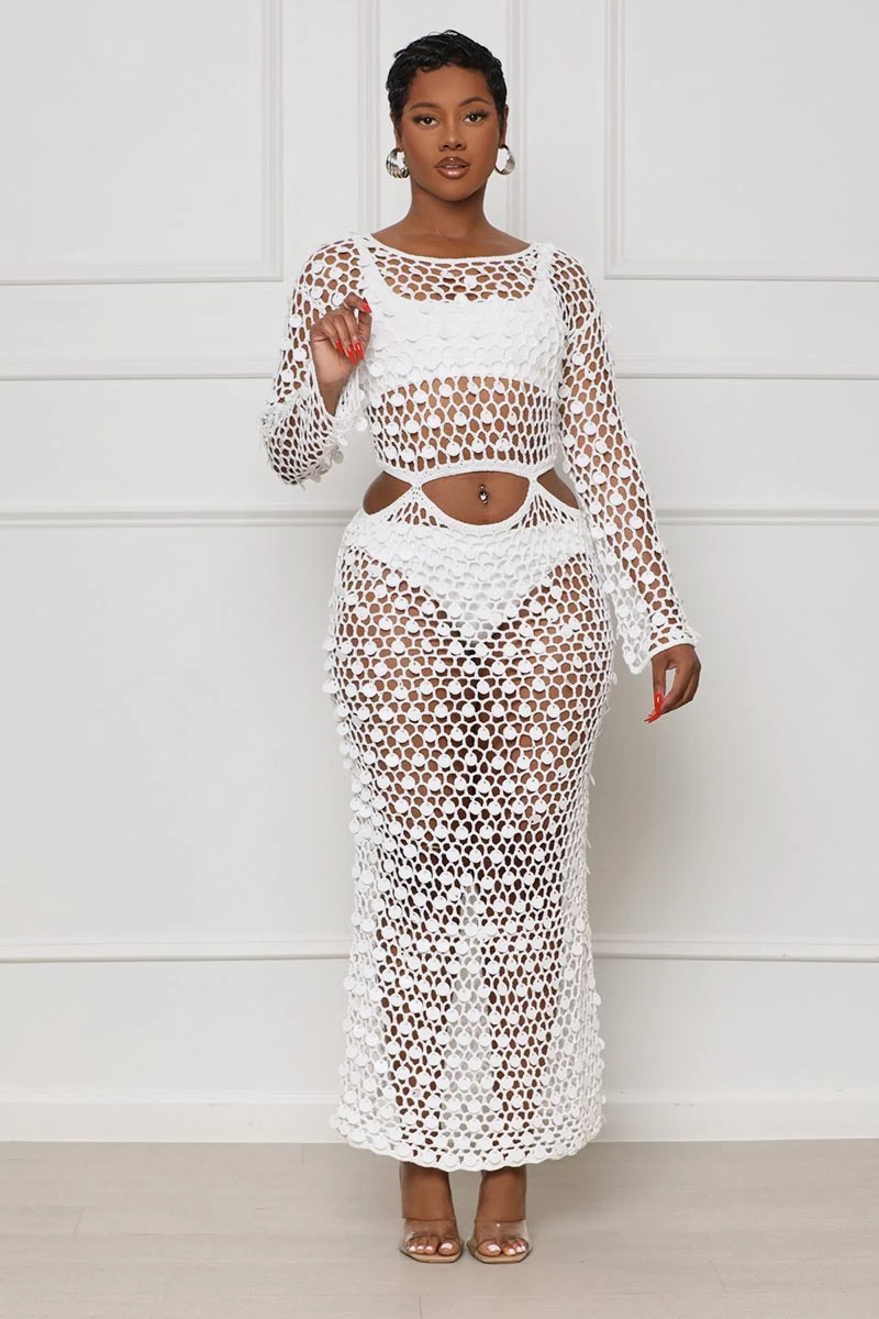 Add a bright splash of color to your vacation wardrobe with our stylish Moroccan Nights Crochet Cover Up. Made of lightweight crotchet material and features shingle sequin detailing throughout, plus cut-out detailing for a unique and eye-catching look. Create a show-stopping vacation look by pairing it with your favorite bikini, or style it with luxe shades and a margarita for a chic evening look.