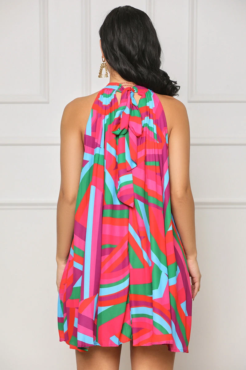 This Never Available Abstract Pleated Dress will add a unique flair to your outfit. The red and multi-colored pattern on the skirt creates a stunning and modern look that is sure to turn heads. Crafted from soft, lightweight material, this dress is designed to keep you comfortable all day long.