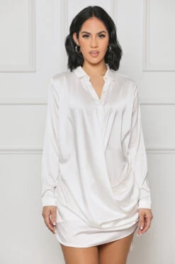 This Our Season Shirt Dress is the perfect item to add to your wardrobe for a sleek casual look. The soft fabric and faux wrap effect provide a flattering silhouette, while the simple design and long sleeves give it an elegant feel. You need a versatile piece that can be dressed up or down, this dress pairs well with thigh-high boots and a handbag to wear to brunch.