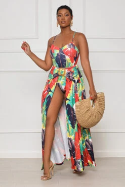 Capture the spirit of summer with the Paradise Passion Bodysuit Skirt Set. Featuring a sweetheart neckline bodysuit with adjustable straps and a matching skirt, this set is designed to emphasize the beauty of your silhouette. The wooden circle detailing adds an artistic touch to the look, perfect for a fashionable vacation wardrobe. Style this bodysuit skirt set with a straw bag for a sun-soaked getaway look.
