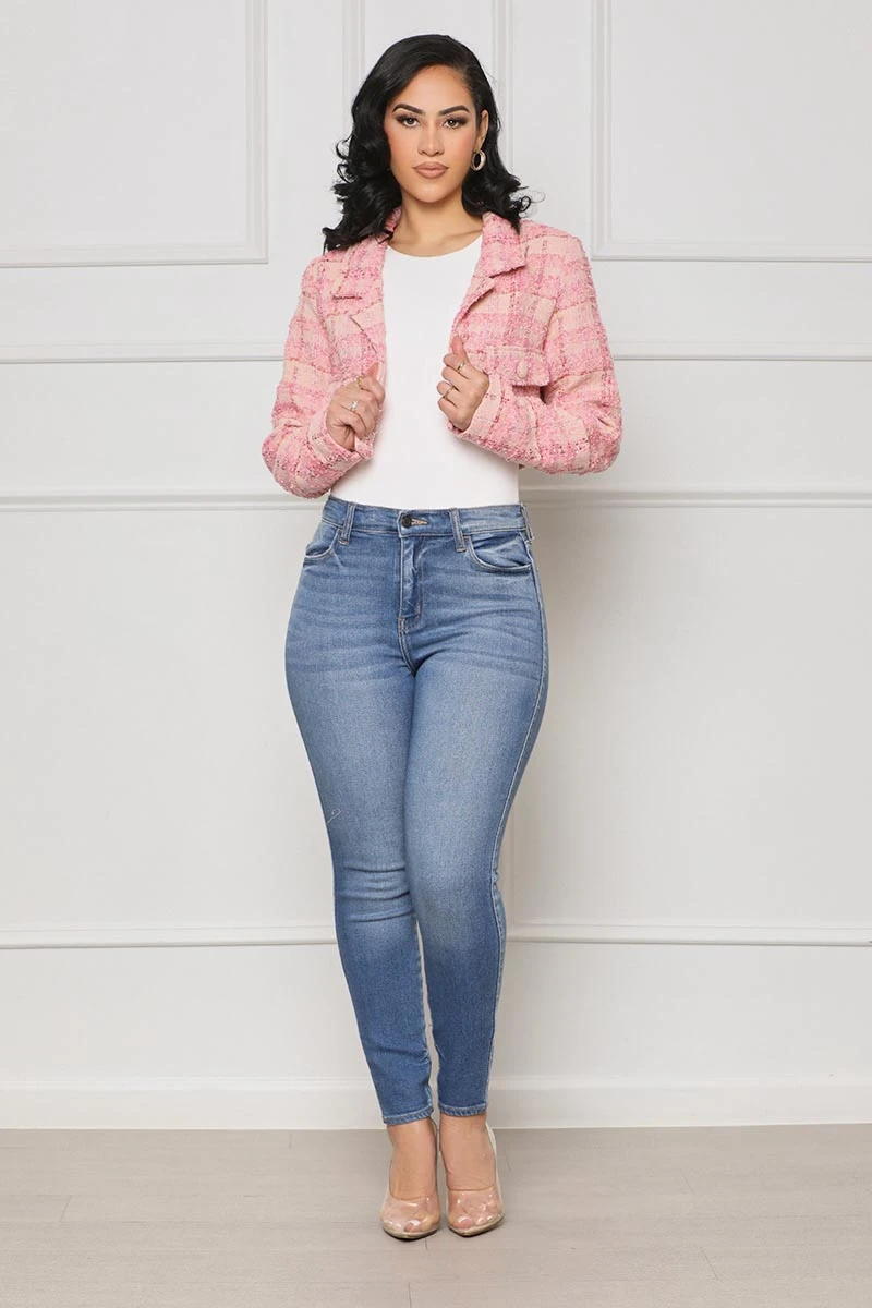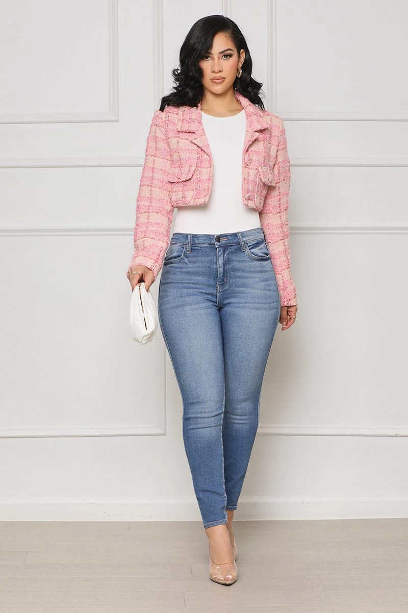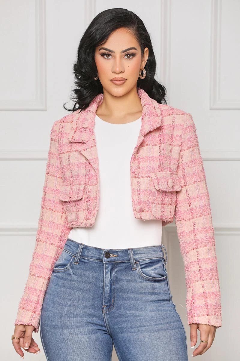 The Perfectly Plaid Crop Blazer is the perfect way to add a pop of color to your everyday wardrobe. This chic fitted tweed crop blazer is covered in a plaid print, and features two front pockets. Pair it with high-waisted jeans or a skirt. Wear with statement accessories to feel stylish wherever you go!