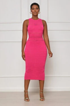Pretty Snatched Ribbed Knit Midi Dress (Pink)