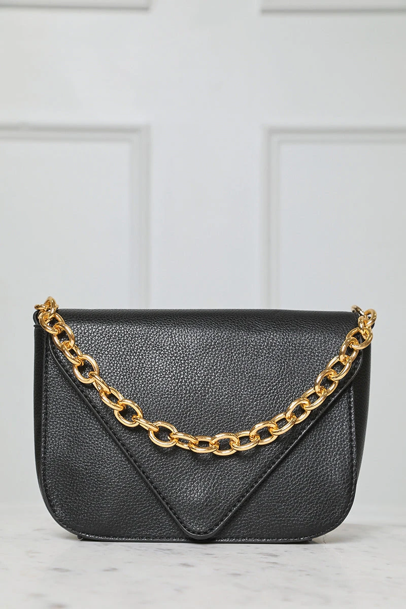 The Rosamund is an elegant bag that is perfectly suited to the modern woman with an eye for style. The medium clutch has a longer chain strap and geometric detailing on the front flap. It can be worn as a crossbody bag or as a clutch, emphasizing your personal style and helping you to achieve any look you want.
