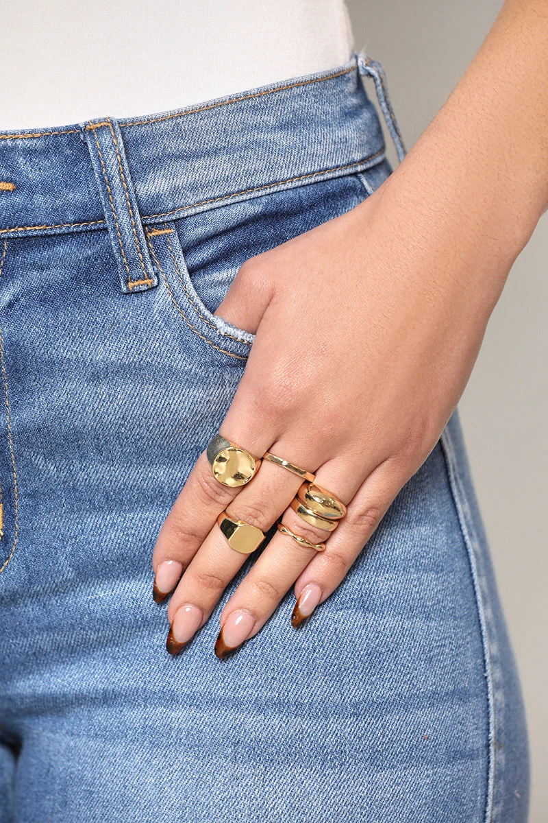 This 6 piece ring set is sure to complete your favorite looks! The rings have many different abstract styles made in a high-quality material. Let this gold ring set complete your favorite look!