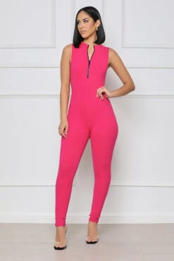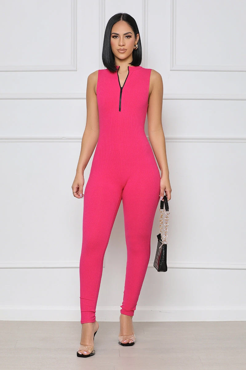 The Sport Mode Contoured Ribbed Jumpsuit is the casual upgrade your wardrobe needs. Featuring a comfort stretch ribbed knit fabric, zipper closure at the neckline, and a figure-hugging fit, this jumpsuit is perfect for running errands all day; or dressing up for a sporty look. Style with a transparent heel and gold jewelry for an effortlessly chic outfit!