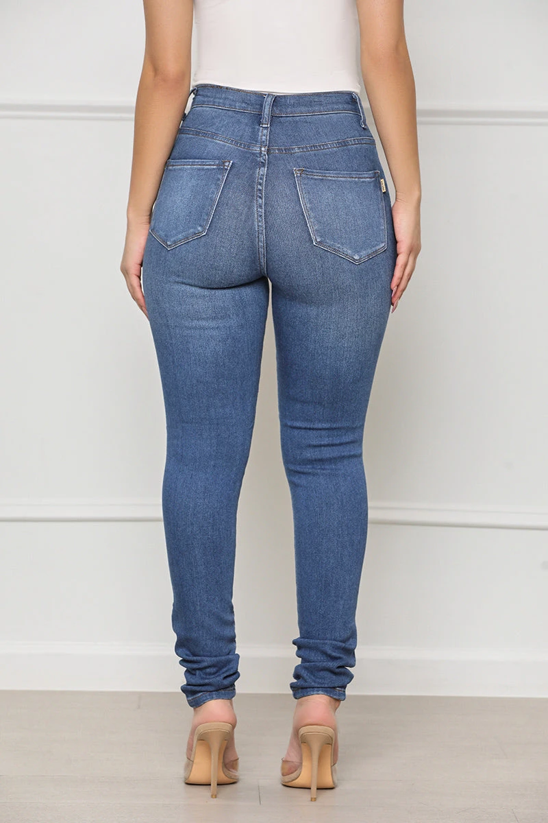 Our Stretching It Medium Wash Denim Jeans are a simple, chic addition to your wardrobe. The medium wash makes these jeans comfortable, yet timeless. These jeans can be worn with a bodysuit for an elegant night out or dressed down with boots and a cute sweater for a casual weekend look.