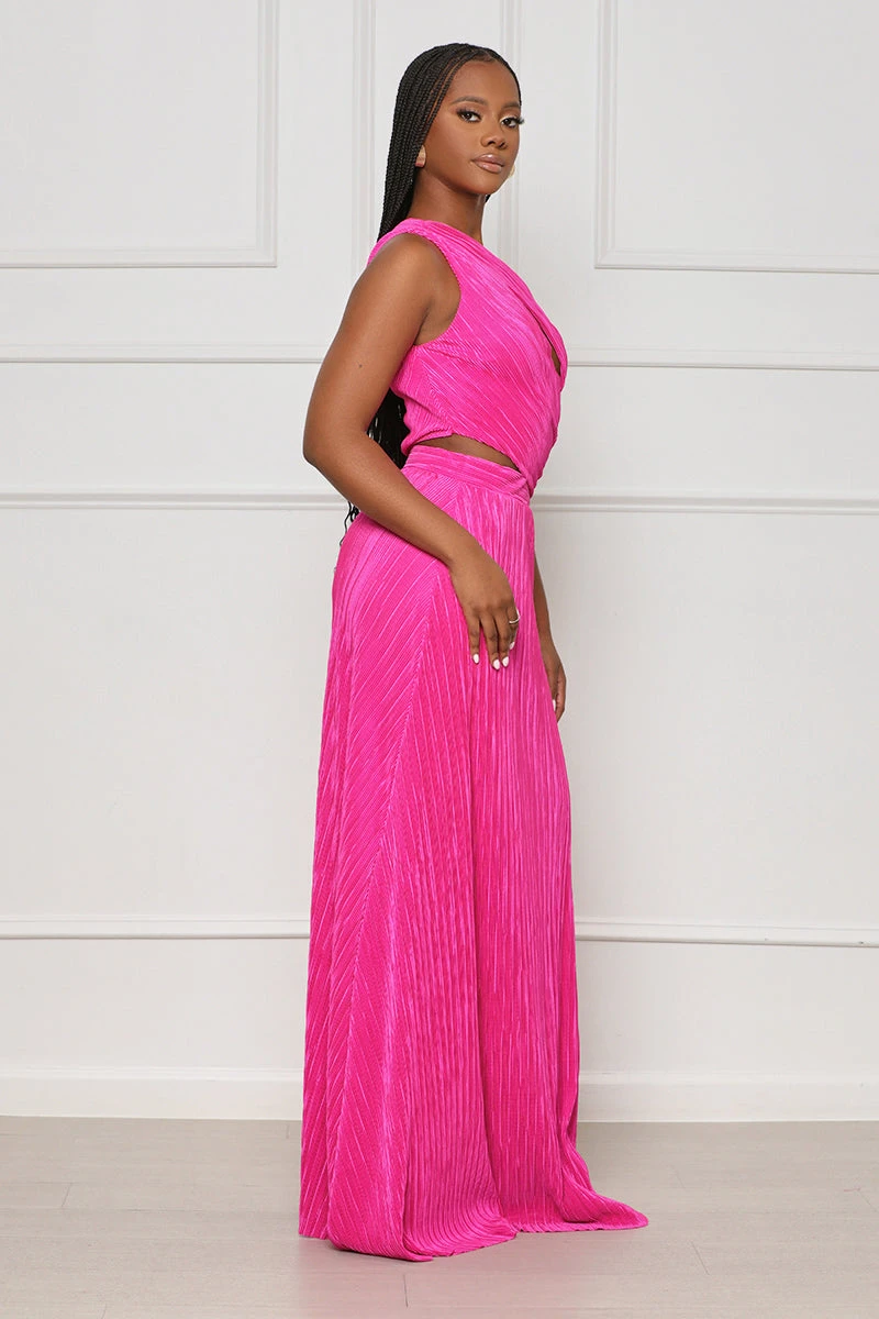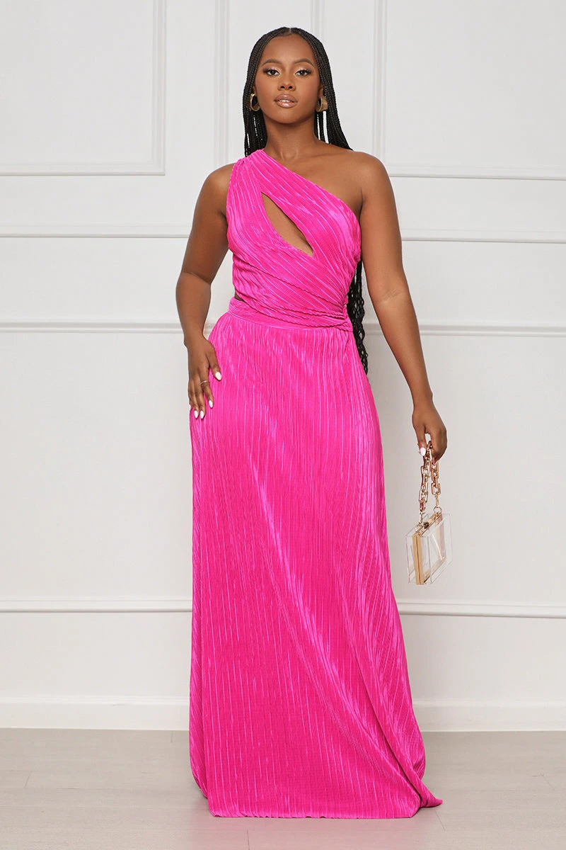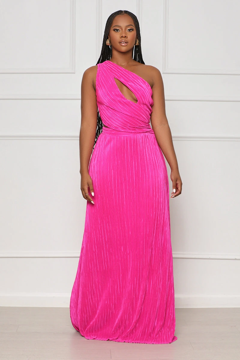 Summer Games One Shoulder Plisse Maxi Dress (Pink)