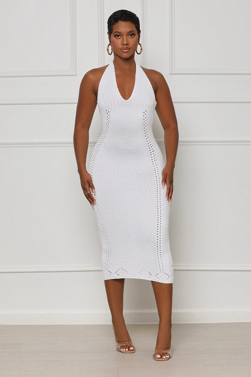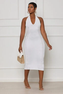 The Summer Staple Knit Halter Top Dress is the perfect way to beat the heat and stand out. It’s fashionably backless and made from a lightweight knit for maximum breathability. Plus, its stretchable fabric gives you all-day comfort. Look stunning and pair it with heels and a handbag.