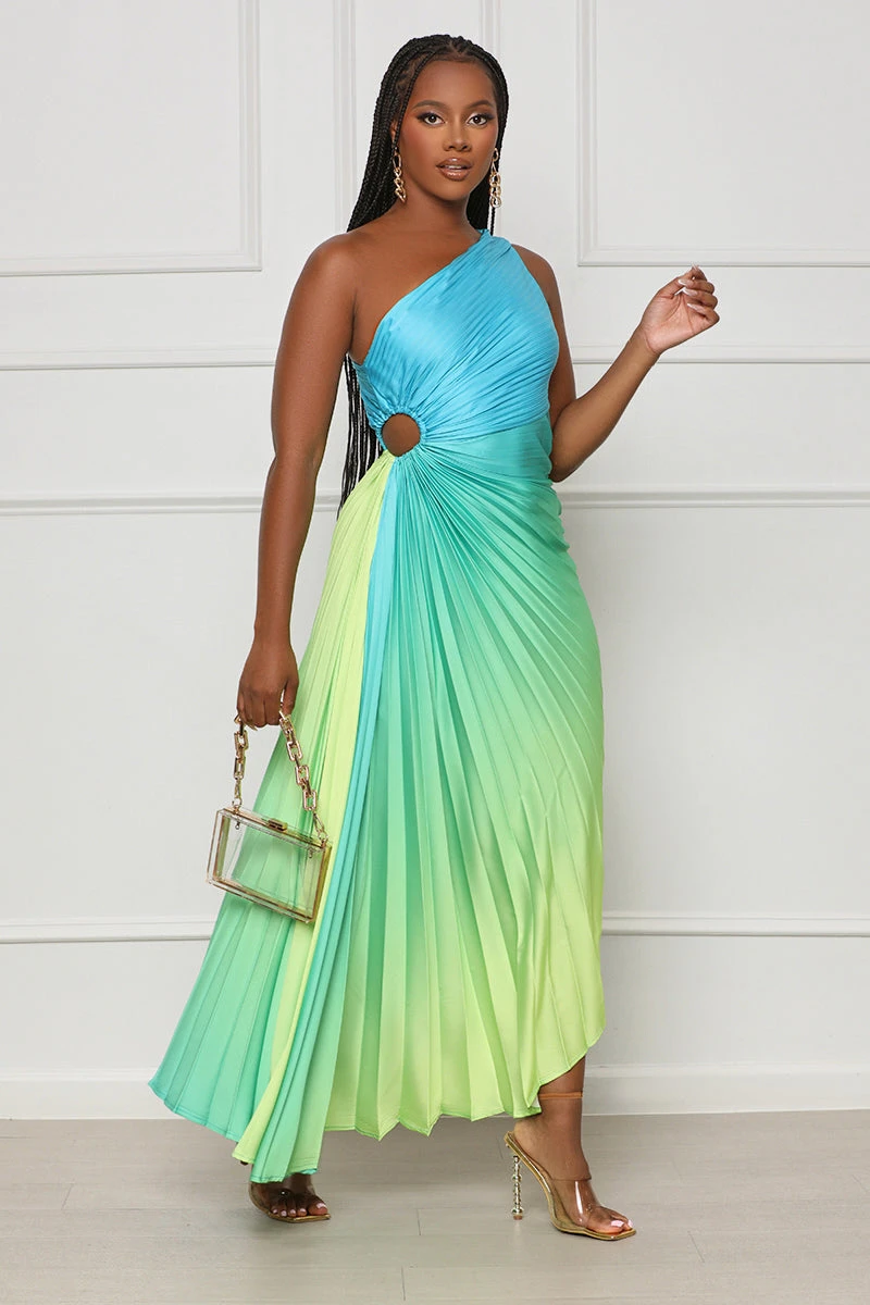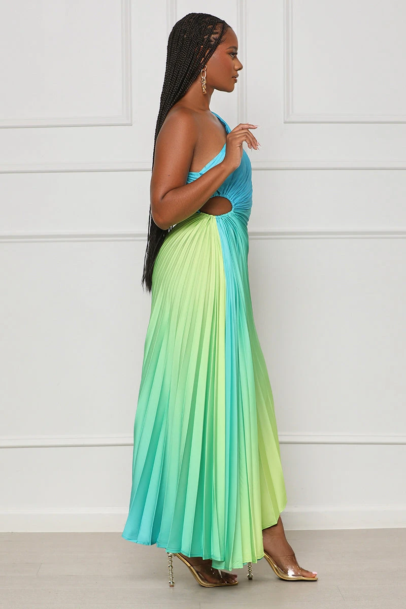 This Sunset Love Pleated Midi Dress is all you need to create a resort beach vibe with your outfit. The ombre print on the fabric creates a fun, colorful look that is perfect for your next vacation. This piece features pleats throughout the dress, keyhole cut-out detailing on the side of the dress, and an easy pullover style.