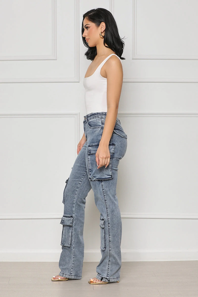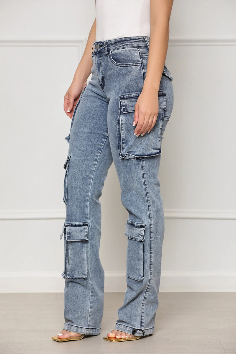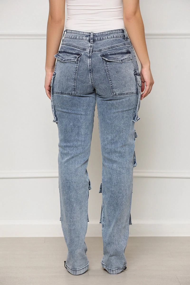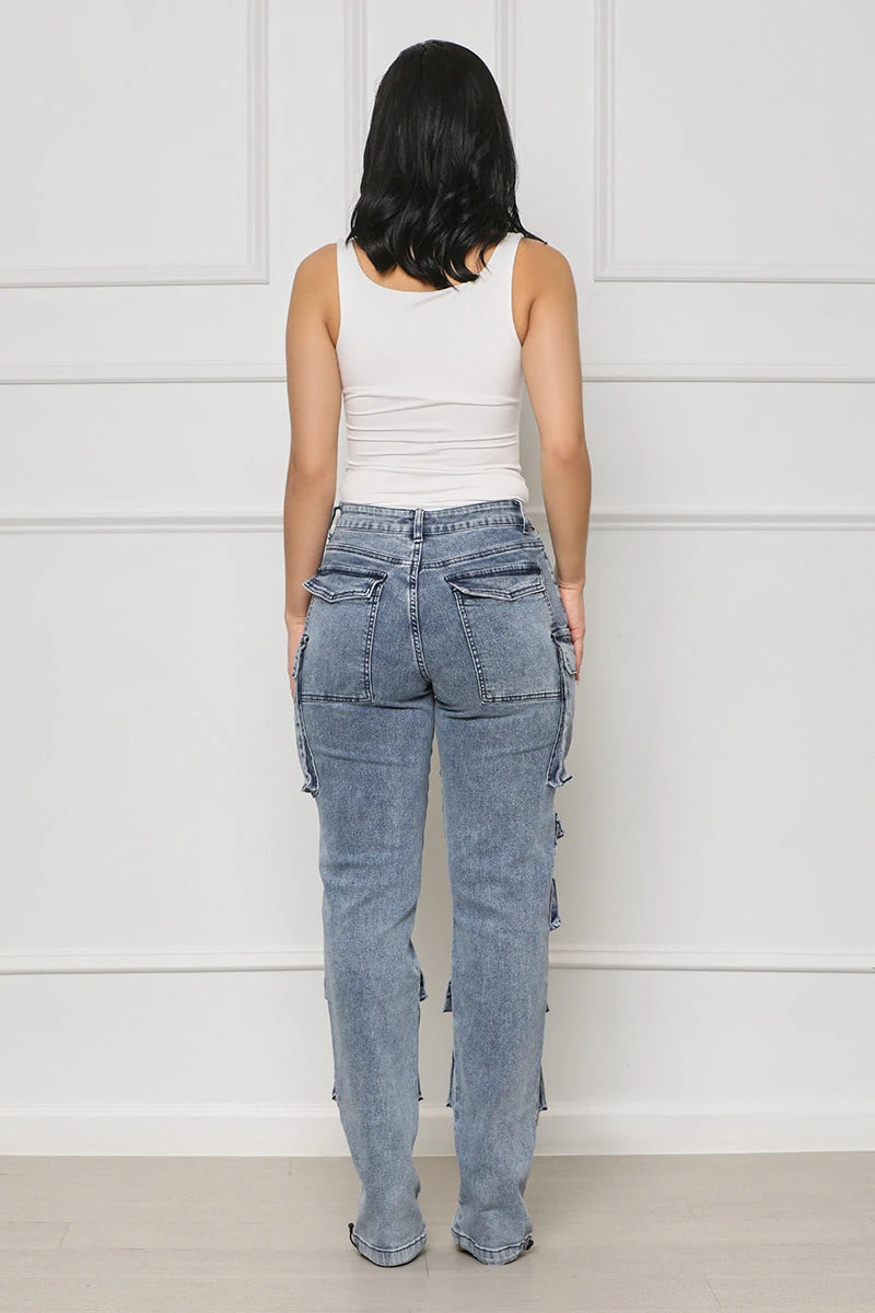 Experience the perfect combination of comfort and style with our Taking Over Cargo Pants. Crafted with expert detailing, these medium wash cargo pants feature drawstring hems and pockets throughout the pants for a functional and fashionable look. Wear them with a bodysuit or graphic tee for a classic yet stylish look.Â