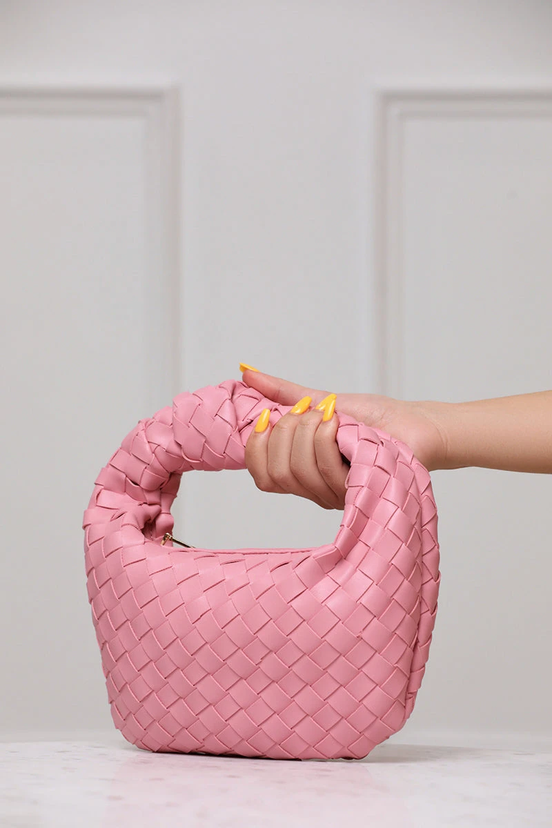 This simple, but stunning Tracy Purse is the ideal statement accessory. The woven leather bag with knotted strap detailing and gold zipper hardware makes this a must have piece for all of your upcoming events.