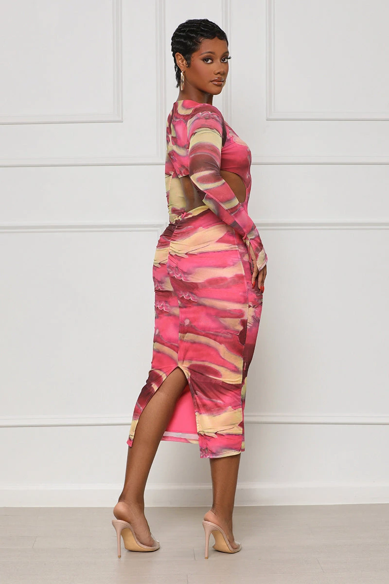 Our gorgeous Trust Yourself Cut Out Watercolor Dress is the perfect day-to-night style for any occasion and season. The watercolor print, cut-outs on each side, and a back zipper closure make this dress fitting for any woman that wants to feel beautiful and confident in their garments. The material has a lot of stretch so you’re sure to have a comfortable fit all day long!