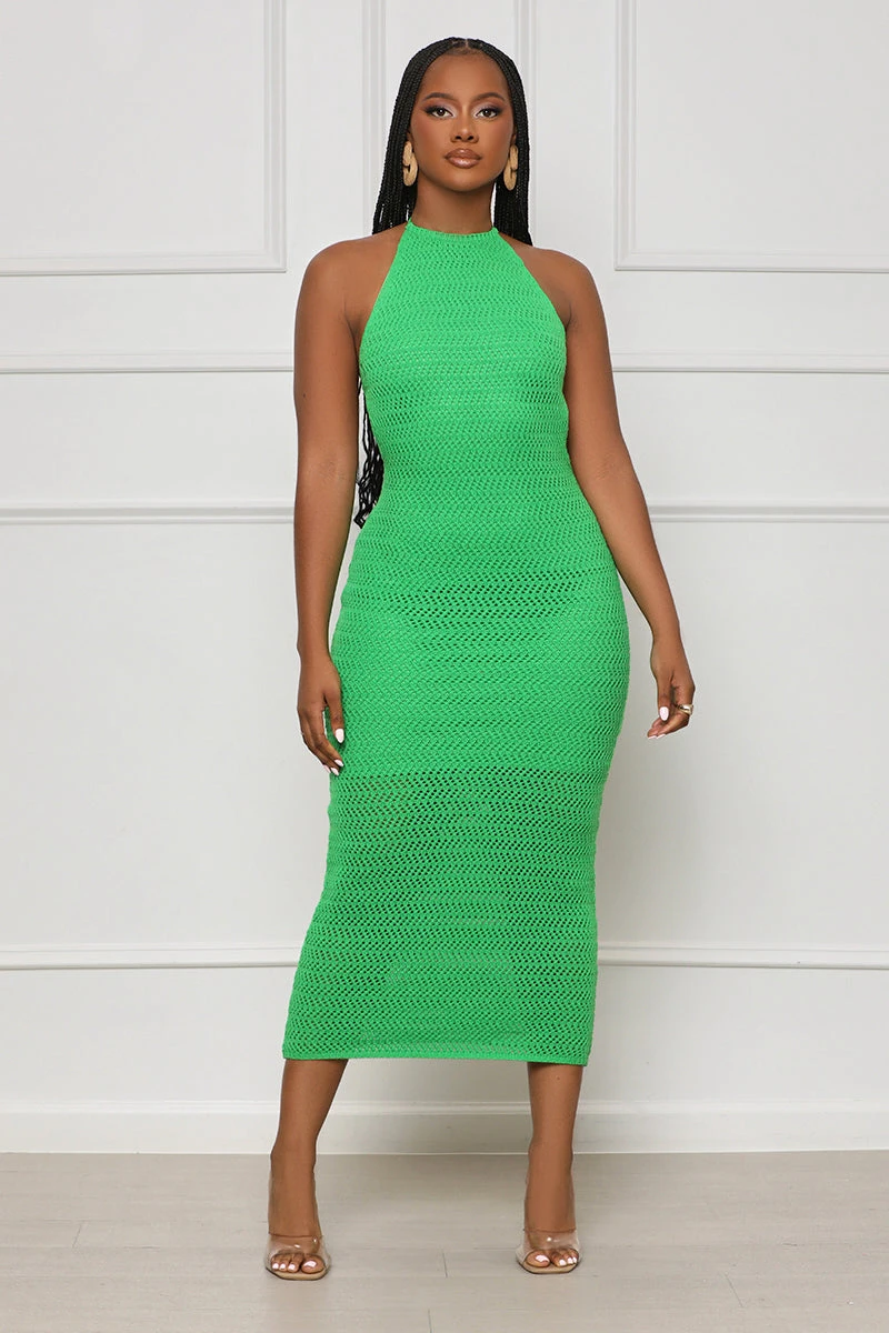 Our Wave Queen Crochet Halter Dress offers a stylish look with a modern touch. Crafted from crotchet fabric with an inner linning that stops knee length for extra comfort, the halter top design is perfect for statement-making fashion. Show off your unique style in this must-have piece, your favorite bag.
