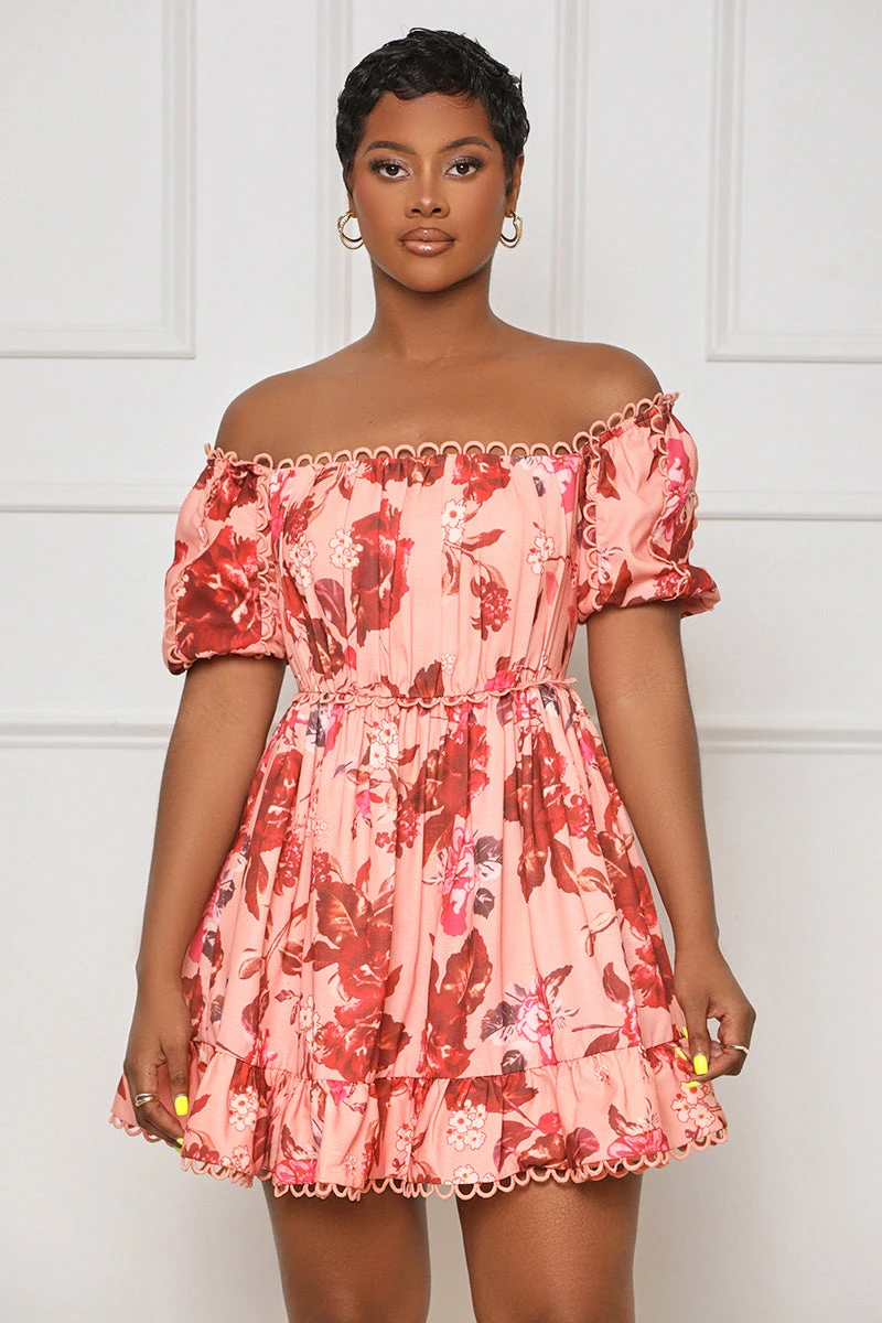 Our Wildflower Floral Babydoll Mini Dress is a spring must-have. Featuring puff sleeves, an off-the-shoulder neckline, and a ruffle design on the hem of the dress it is sure to make a statement. Pair with heels and your favorite bag for a fun daytime look!